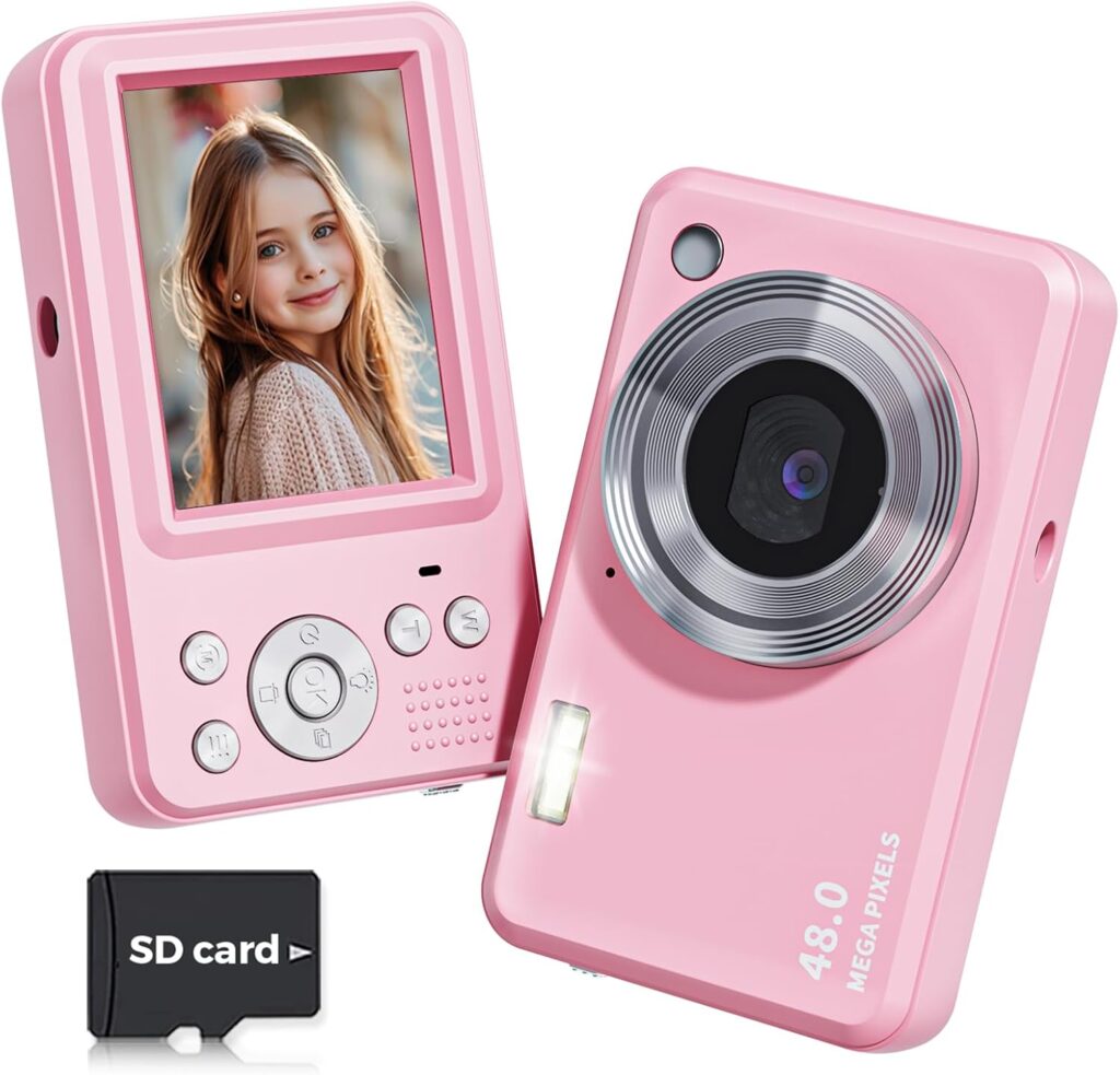 Upgraded CMOS sensor chip, This digital camera takes clear 48MP photos and 1080p high-definition videos, which can vividly record your moments in natural detail. No complex settings or buttons, Its simple interface, Autofocus feature and Point-and-shoot design make it easy to operate once setup. Ideal for 6-17 years old kids teens or beginners.