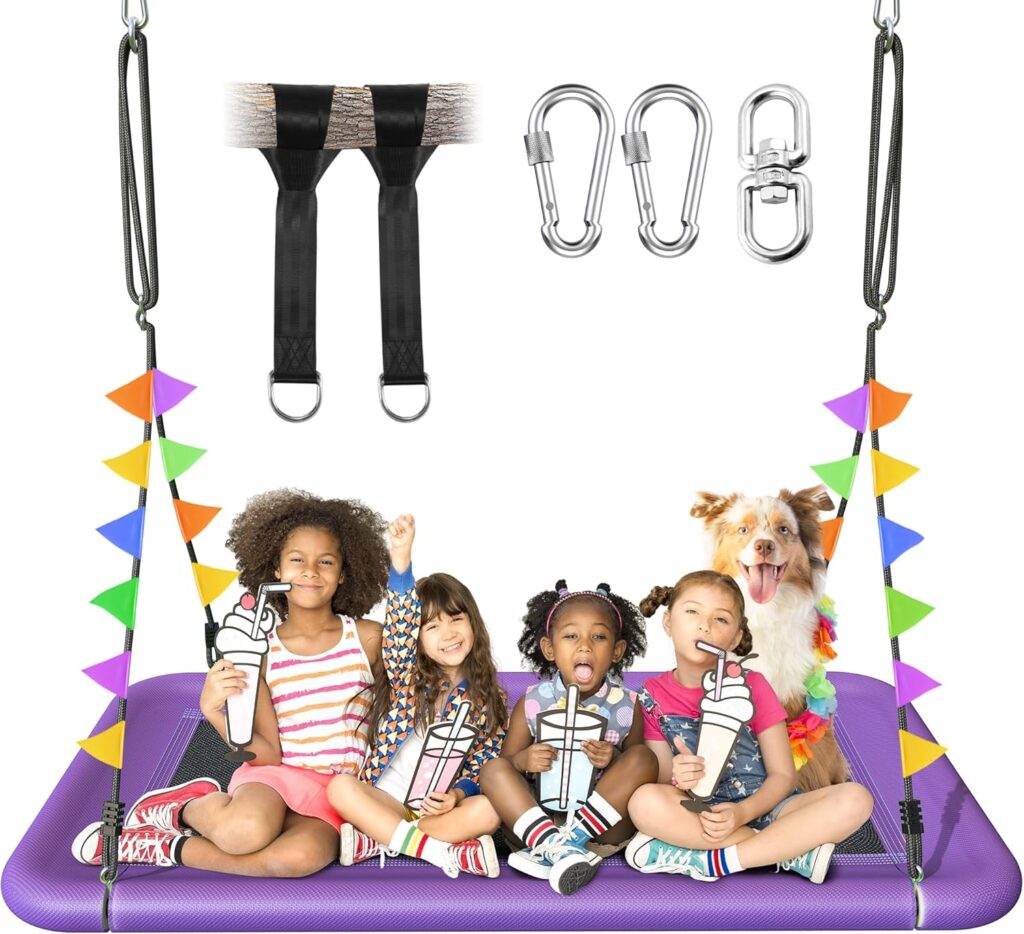 Heavy-duty steel frame with tight weave Textilene fabric seat. Comfortably holds up to 4-5 kids or 2 adults. Rated for 700 pounds. Perfect for backyard, garden, or indoor use. Safer and stronger for long-time swinging. Made with premium tear-resistant, UV-protected, and waterproof Textilene material. This durable Rectangle Platform swing withstands rain, sun, and heavy use all year round. Great for kids, teens, and adults.