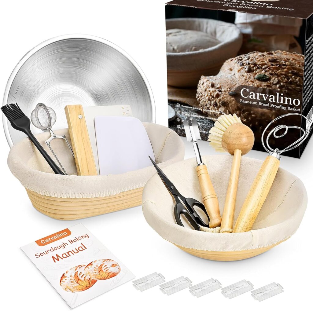 The material for Carvalino’s proofing basket is sourced from natural rattan in Indonesia, completely free from dyes and chemicals. It offers excellent durability and breathability, aiding in maintaining the dough’s shape and allowing it to ferment and take shape fully. You’ll receive a set of 2 banneton baskets in classic shapes: a 10-inch round and a 9-inch oval. Both meticulously handcrafted and dried to perfection for a smooth, non-stick surface. Each basket holds 2 pounds of bread dough. Designed to achieve uniform shapes and textures, easily release dough while preserving the shape. Sturdy and long-lasting, they’ll be your trusted baking companions for years. After each use, simply tap and brush the surface lightly, and any leftover flour will come off. Your bread basket doesn’t require excessive cleaning. If dough sticks to them, just wait for it to dry and then use the included brush to clean it off.